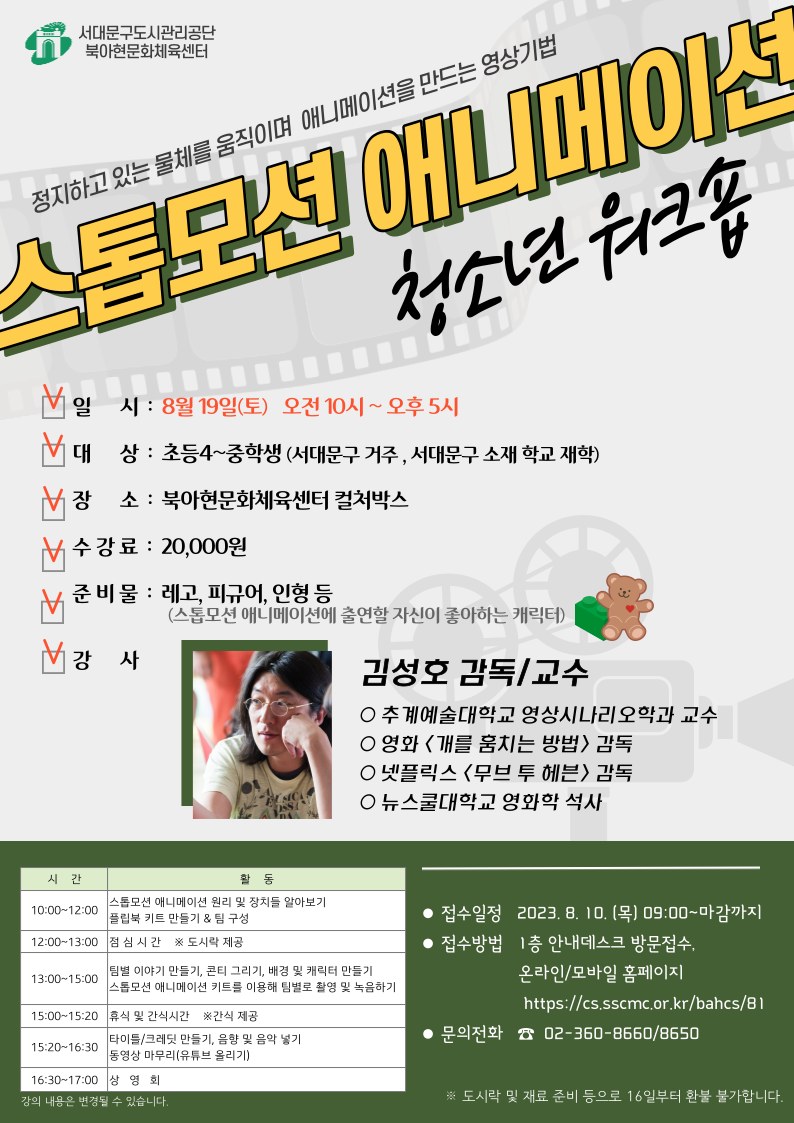 강좌 스톱모션 애니메이션 워크숍 안내