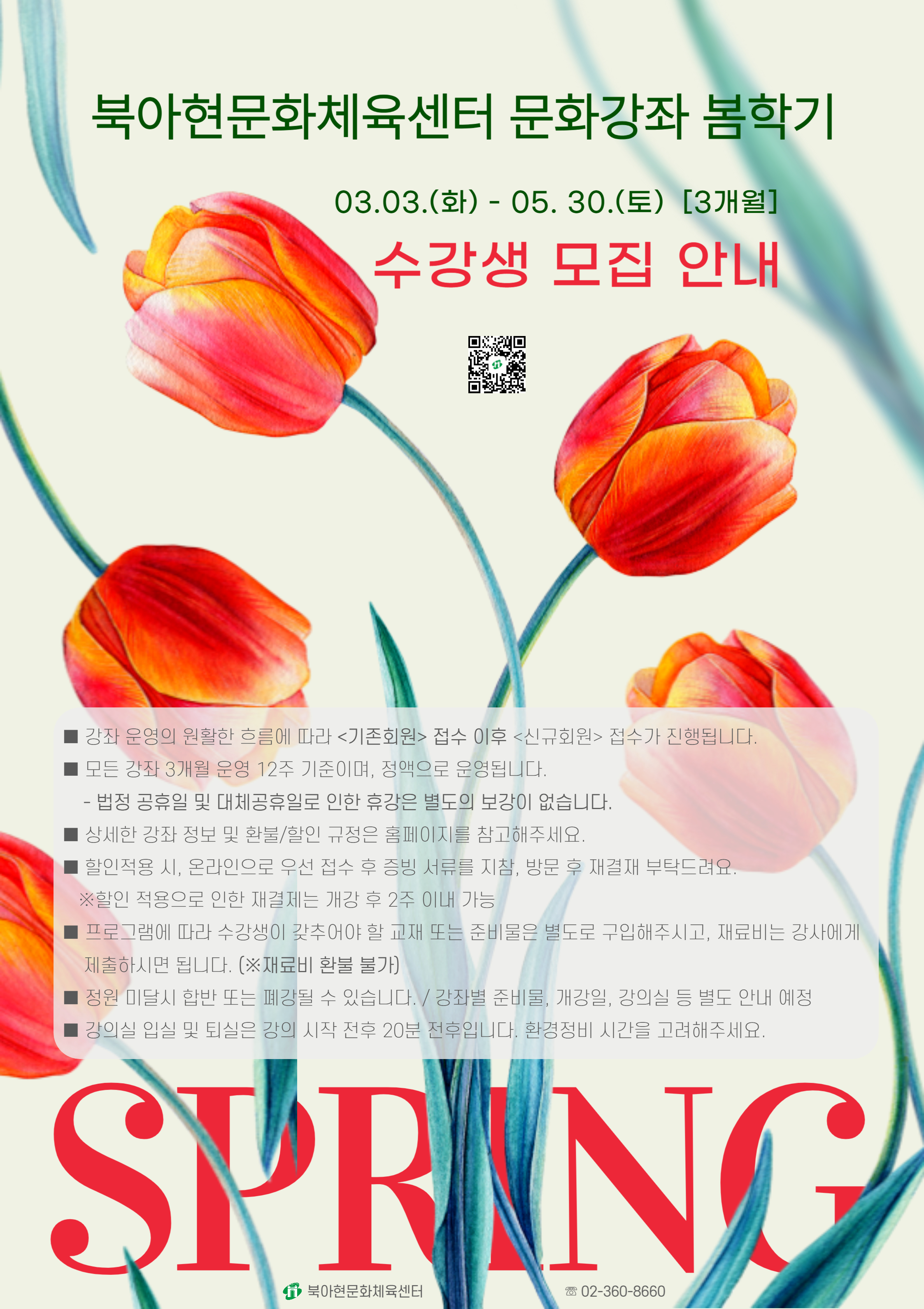 2026년 북아현문화체육센터 봄학기 문화강좌 접수안내