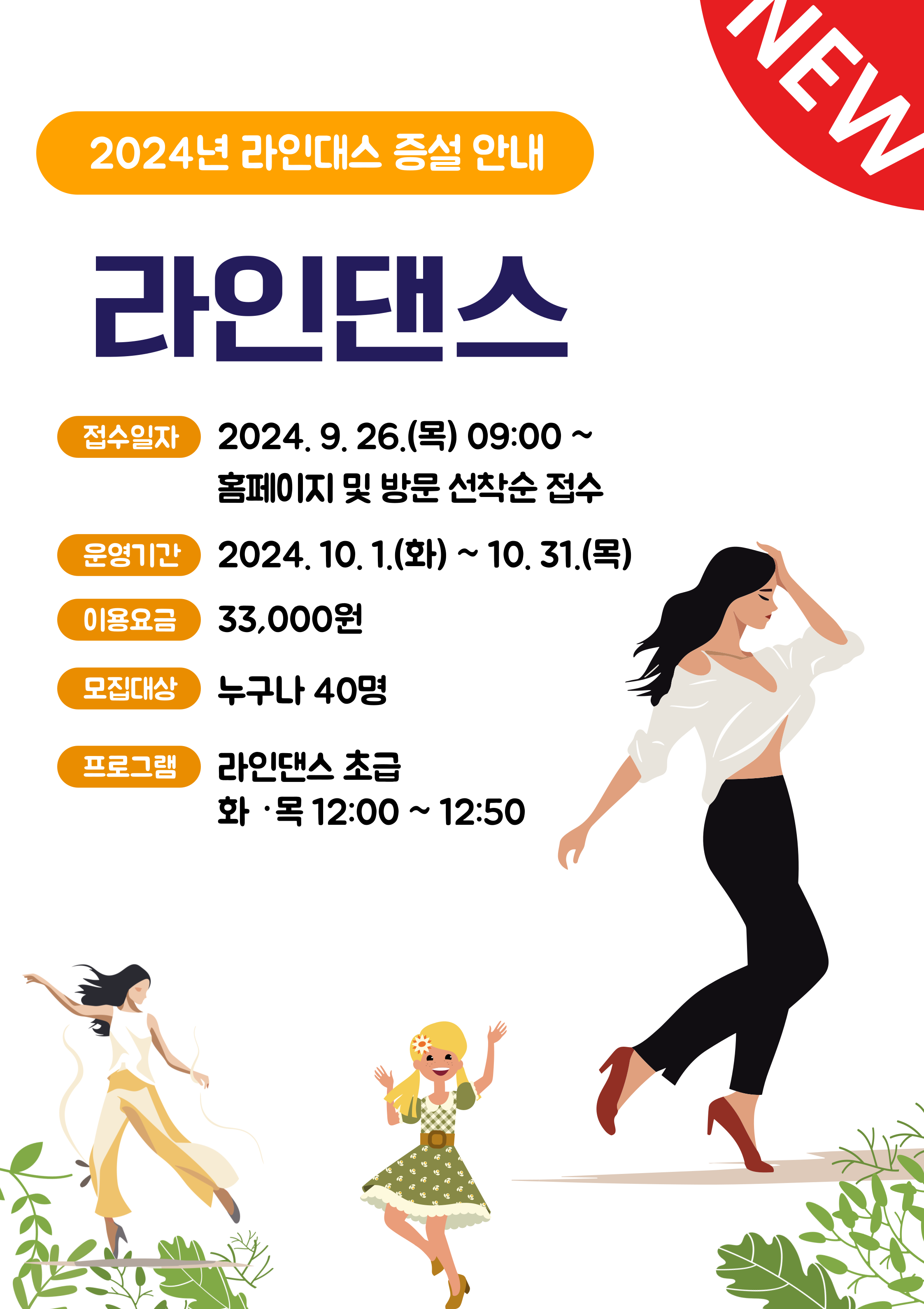10월 체육프로그램 라인댄스 초급반 증설 접수 안내!!