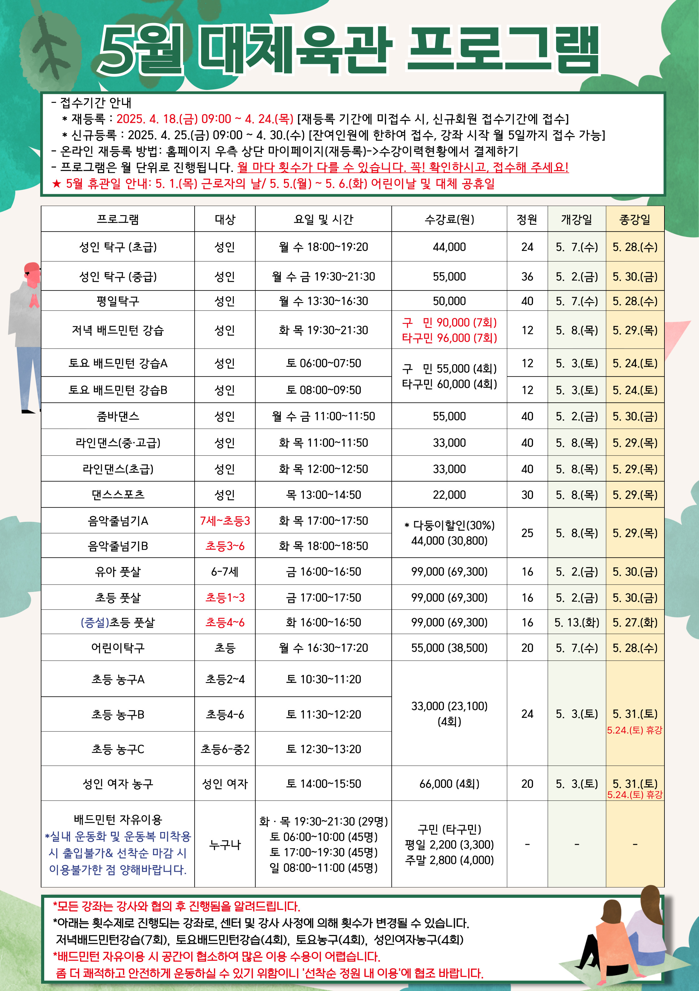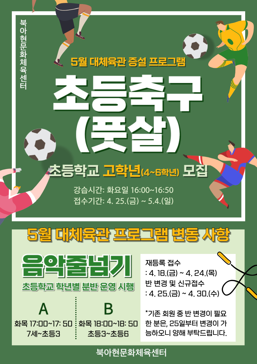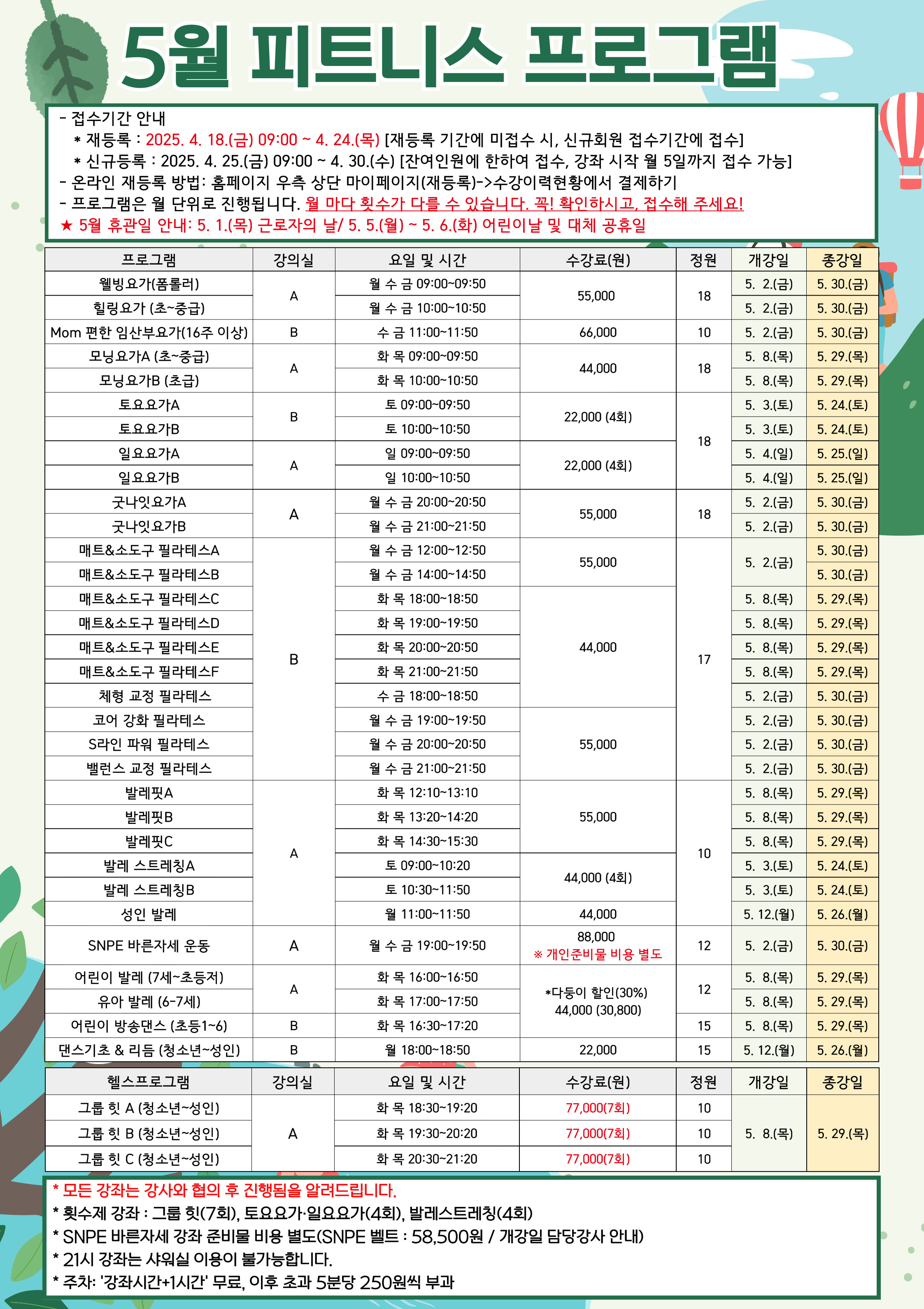 북아현문화체육센터 5월 체육 프로그램 접수 안내