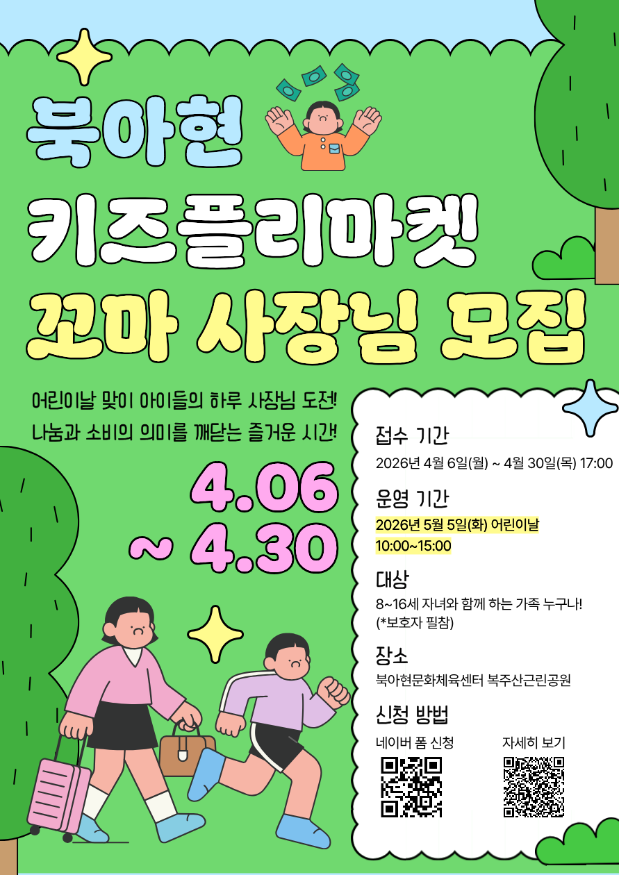 공지 어린이날 맞이 키즈플리마켓 '꼬마 사장님'을 모집합니다!