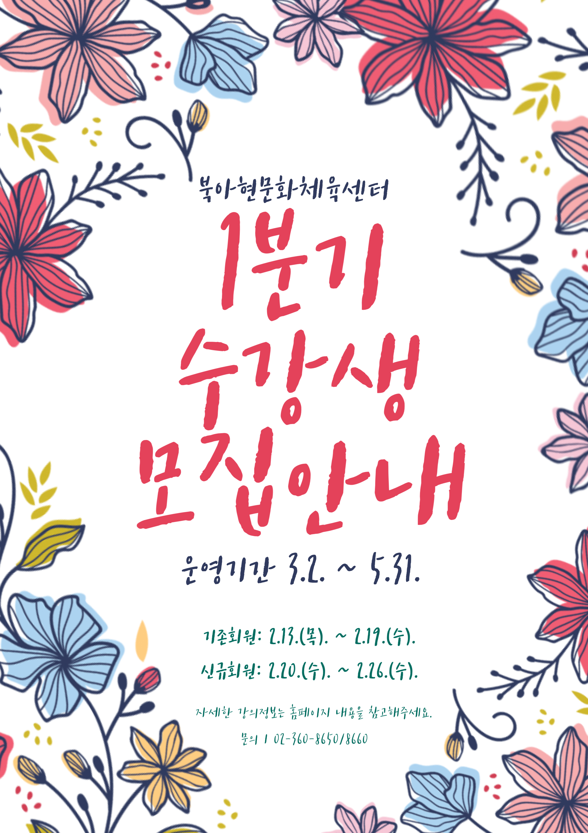 공지 북아현문화체육센터 1분기 문화강좌 접수안내