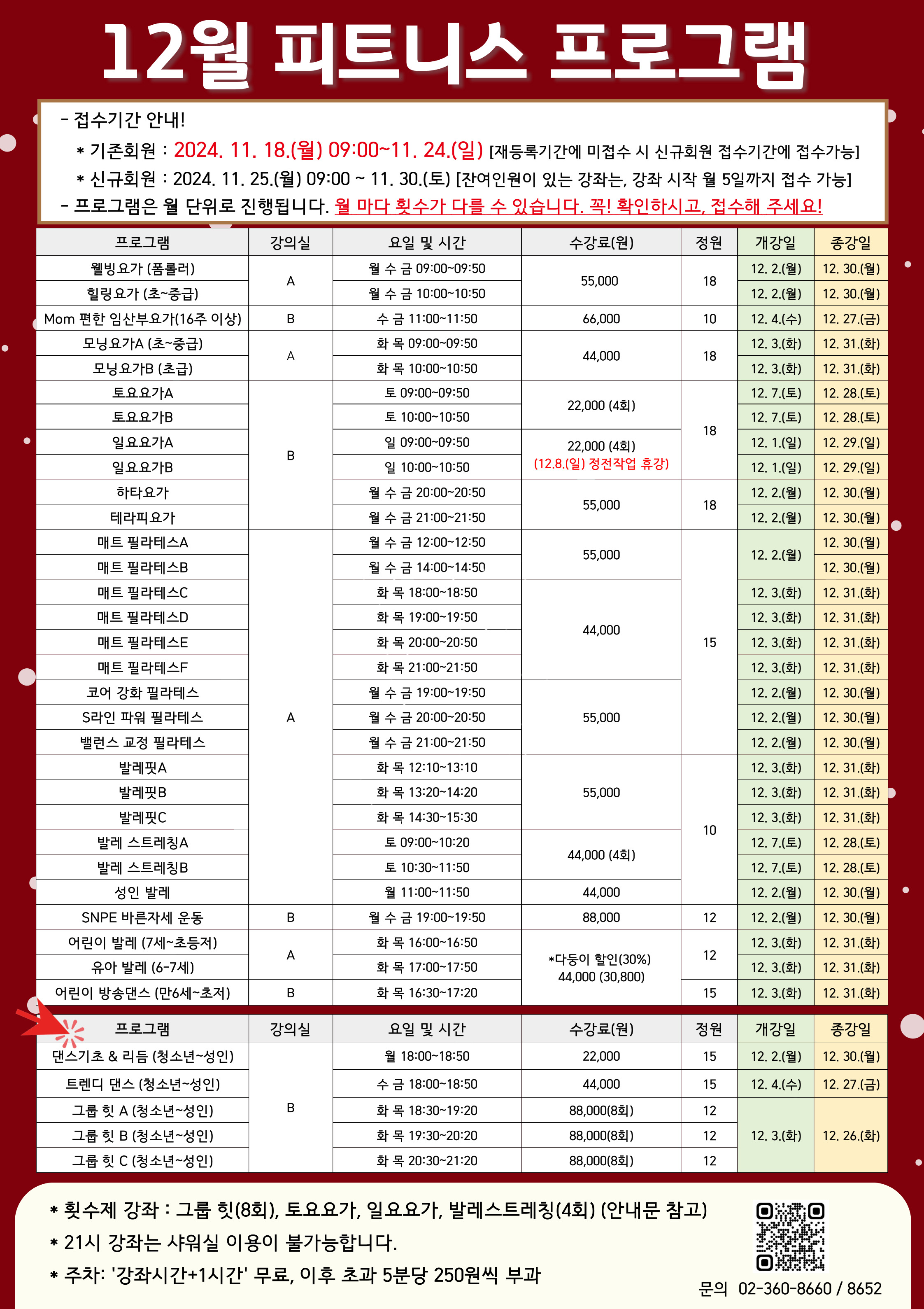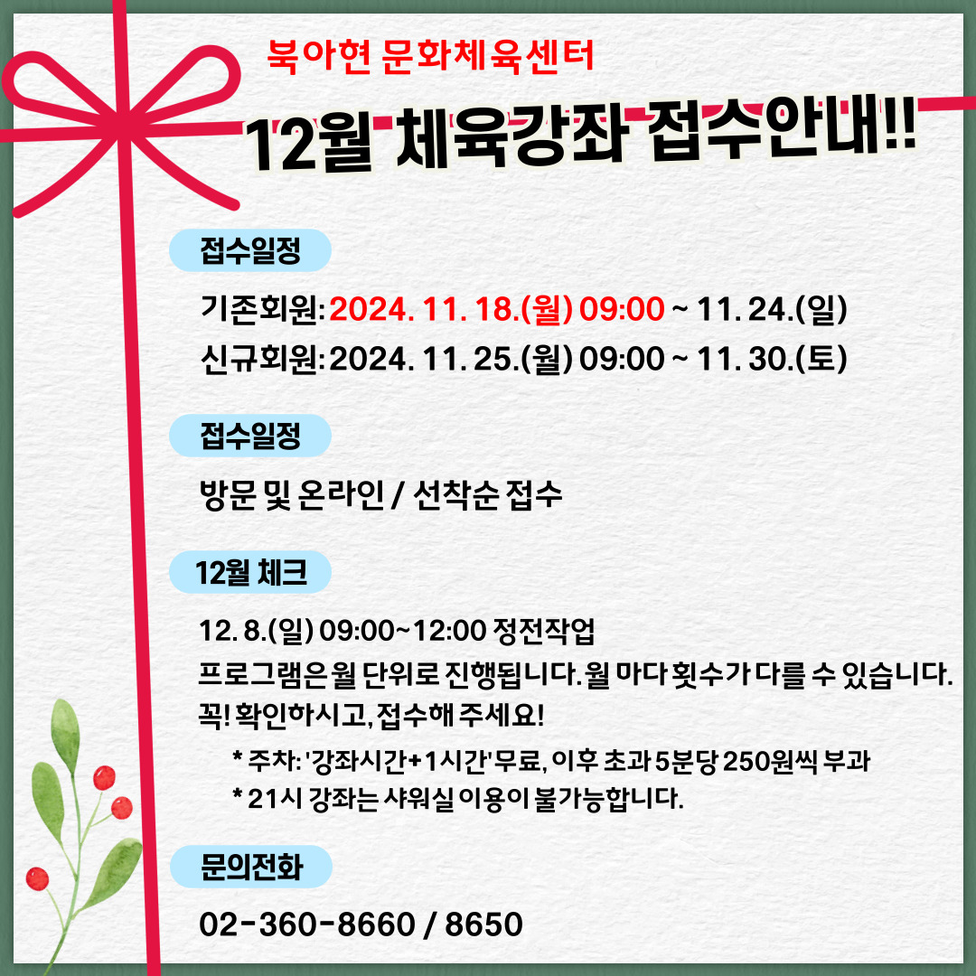 북아현문화체육센터 12월 체육강좌 접수 및 프로그램 안내