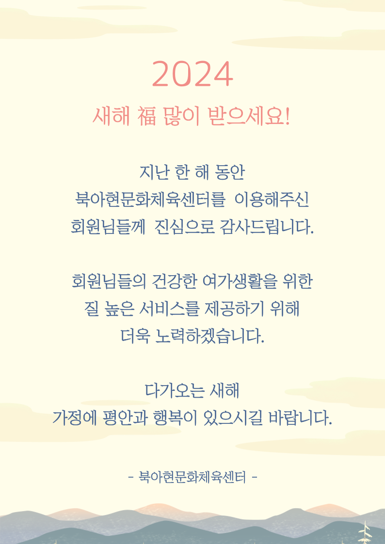 2024. 1. 1.(월) 센터 휴관일입니다.
