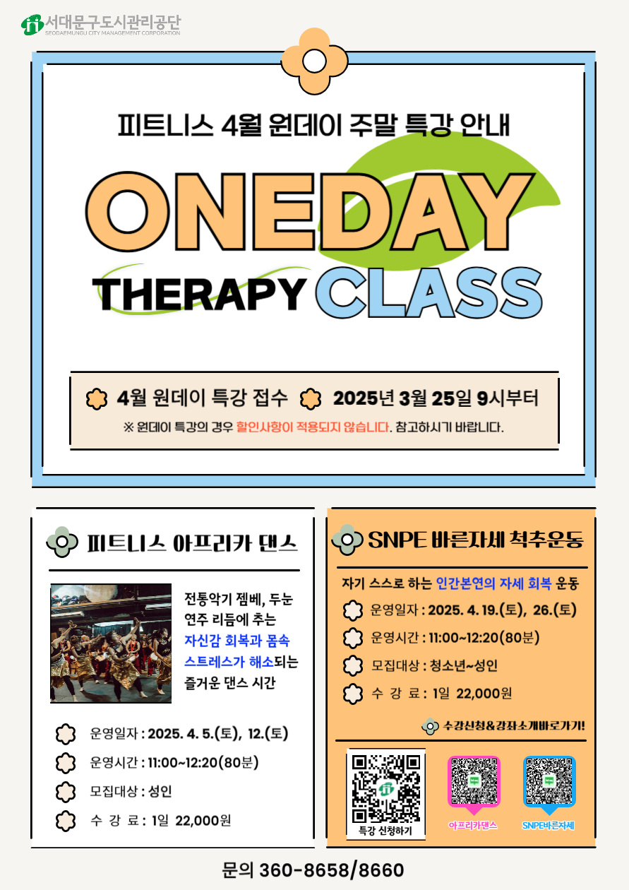 북아현문화체육센터 피트니스 4월 주말 원데이 특강>