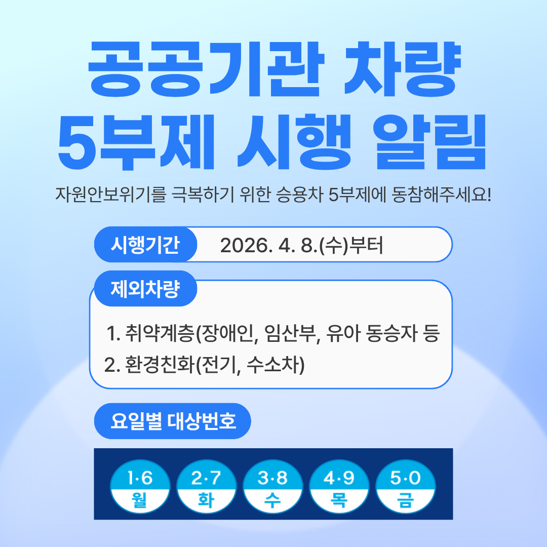 1. 공공기관 차량 5부제 시행.png [ Size : 372.19KB , Down : 59 ] 미리보기 다운로드