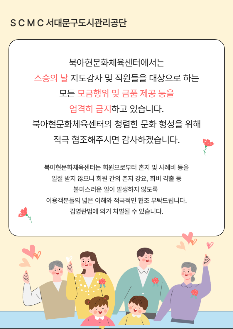 공지 북아현문화체육센터 5월 체육 강좌 접수 안내