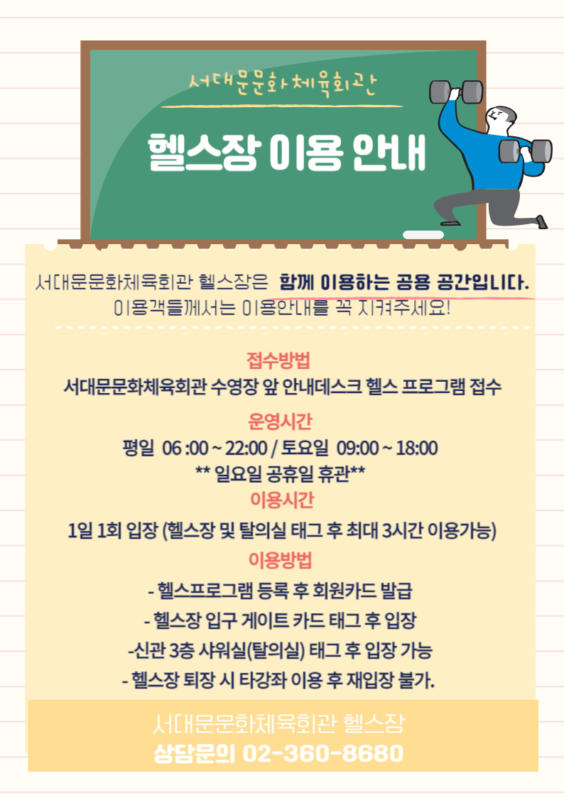 서대문문화체육회관 헬스장 이용 안내 드립니다.