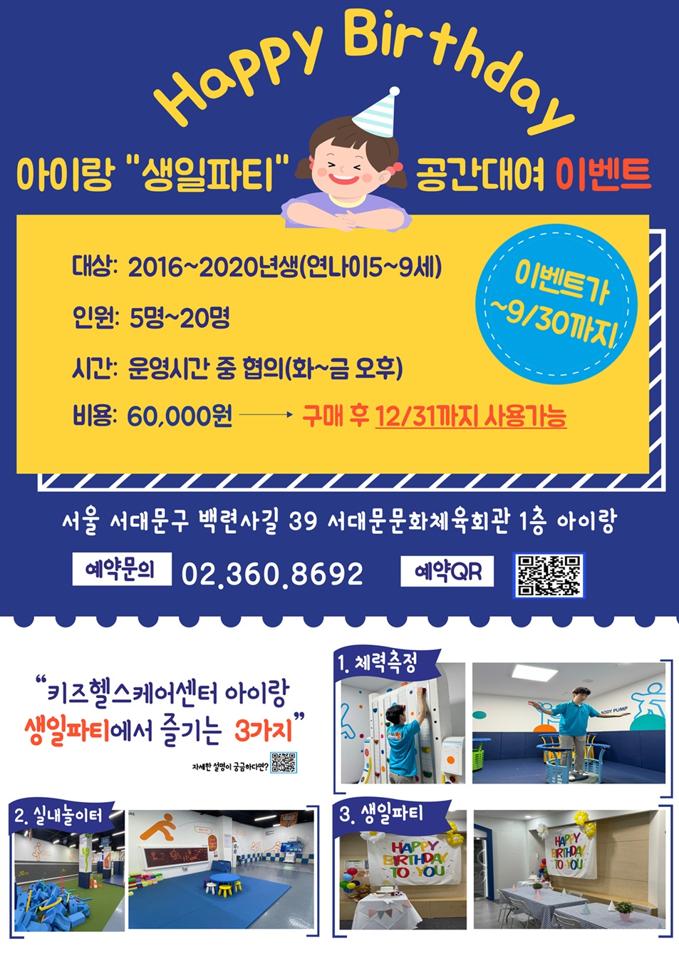 체력측정+실내놀이터+생일파티 이 모든게 가능한 [서대문키즈헬스케어센터 아이랑] 강.력.히. 추천드립니다!