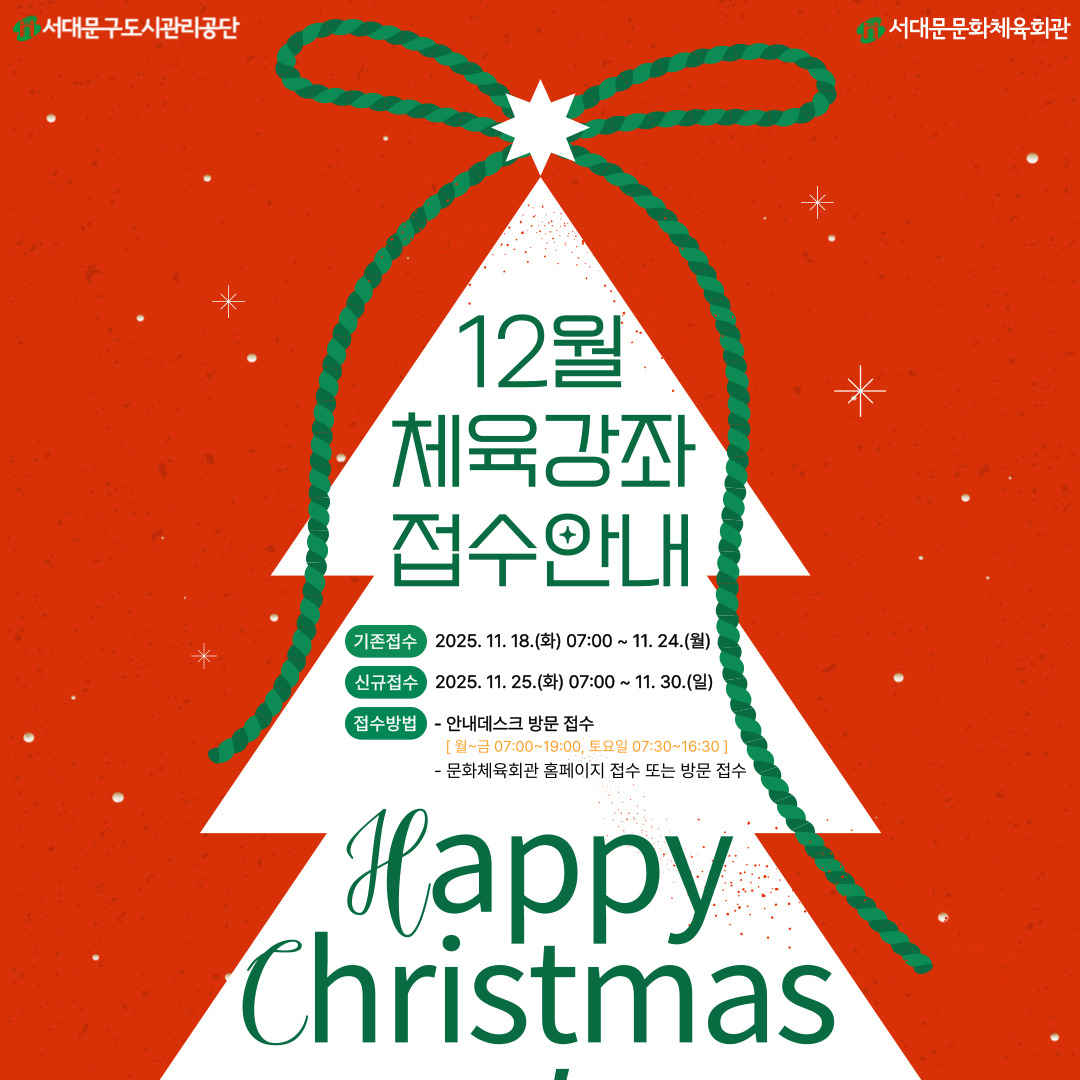 공지 서대문문화체육회관 12월 체육강좌 접수안내