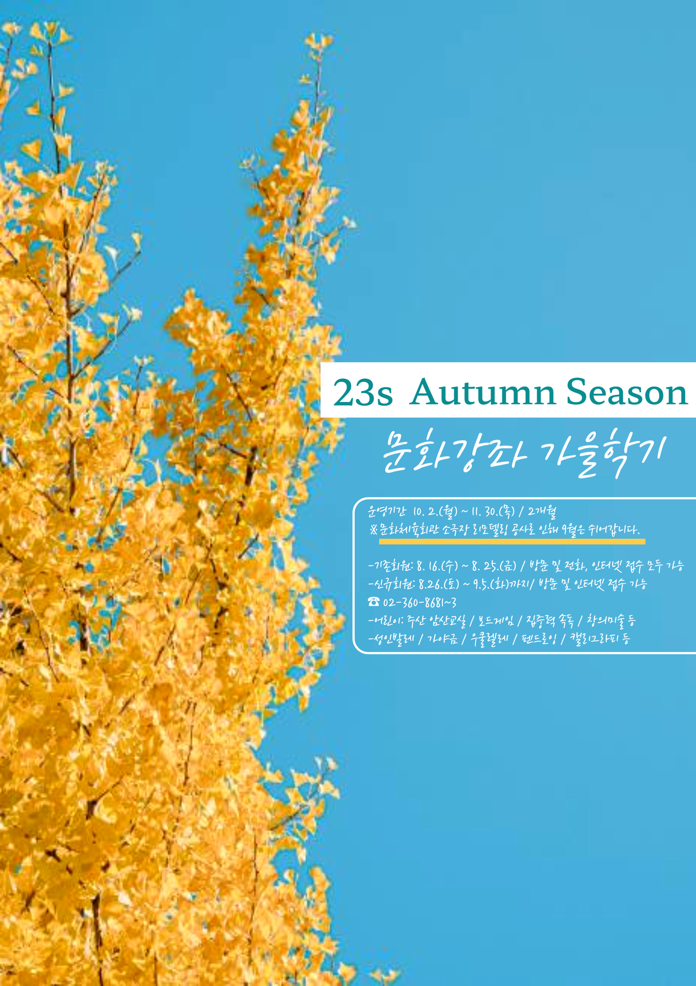 서대문구도시관리공단 문화체육회관 가을학기 문화강좌 접수 안내