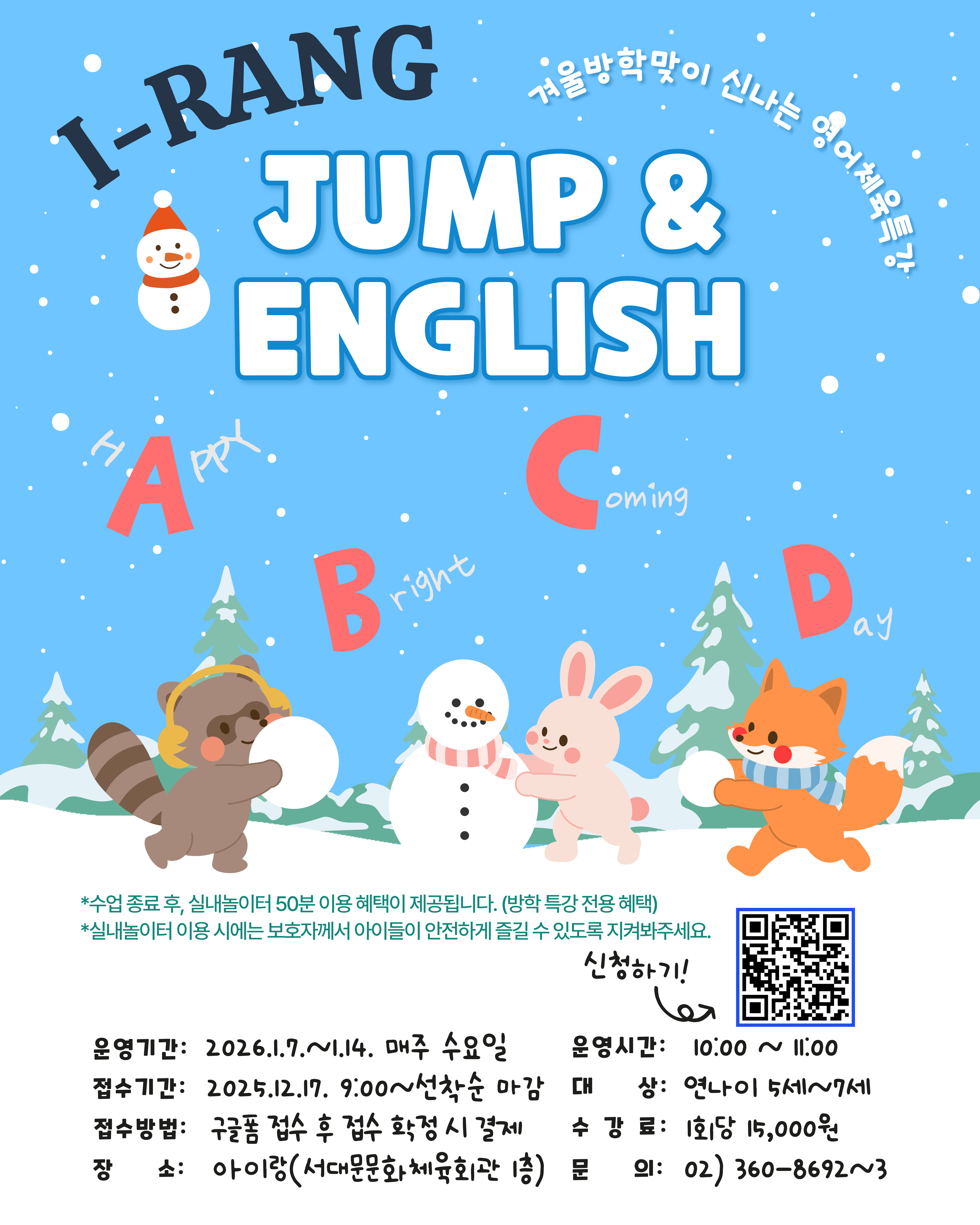서대문키즈헬스케어센터 아이랑 겨울방학특강 JUMP&ENGLISH 모집 안내