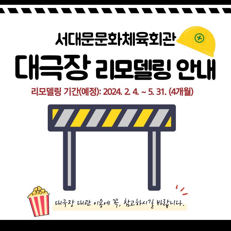 대관 서대문문화체육회관 대극장 리모델링 안내