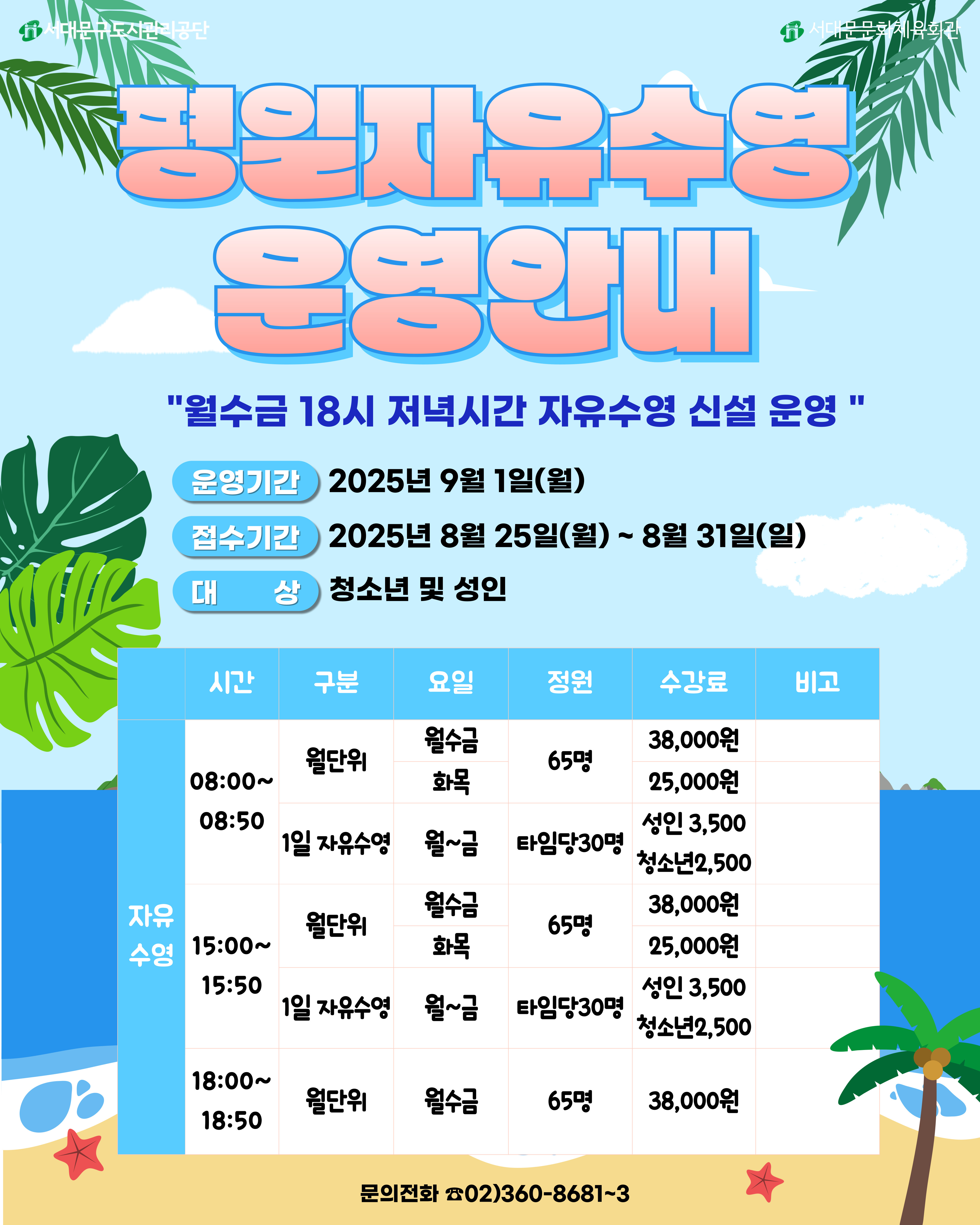 공지 평일 자유수영 운영안내