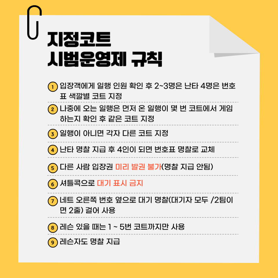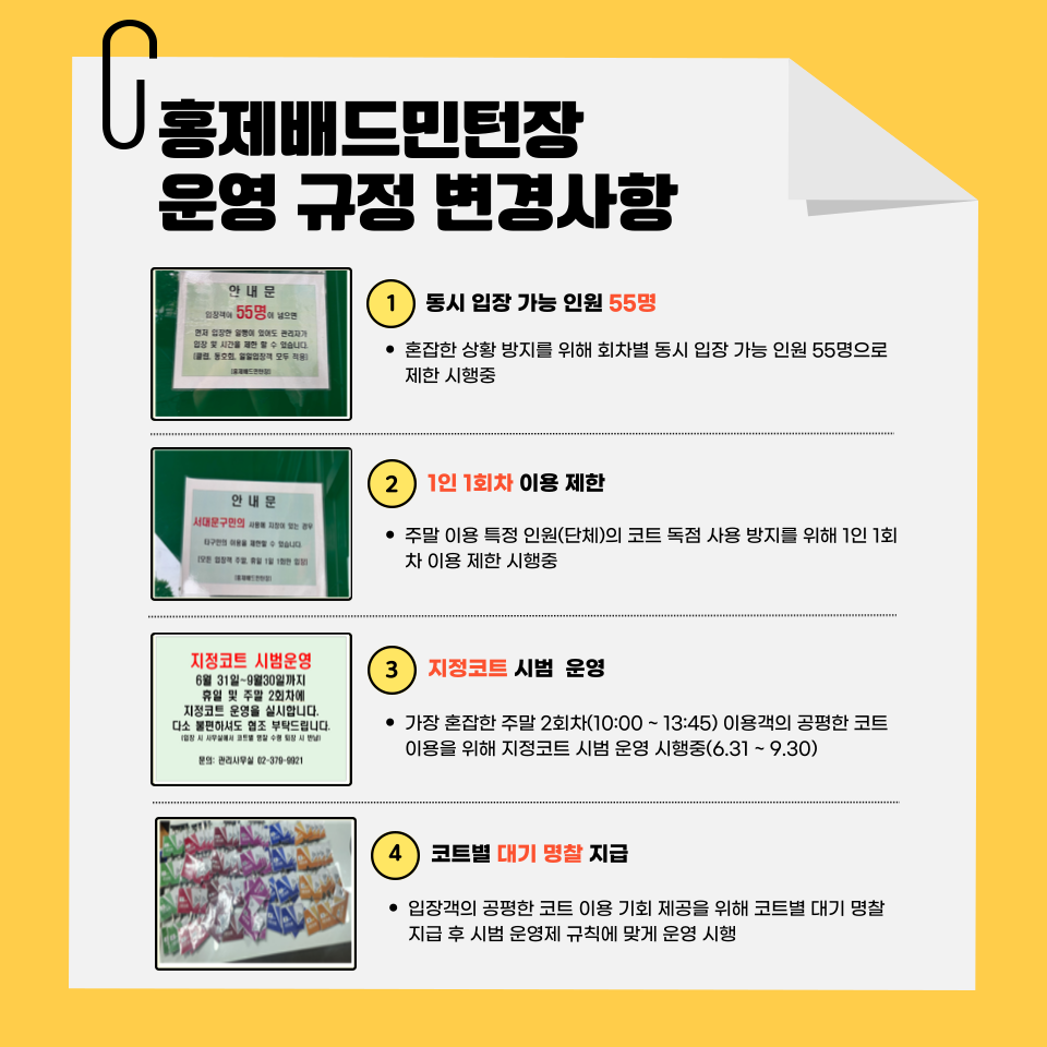홍제배드민턴장 운영 규정 변경사항 안내드립니다.