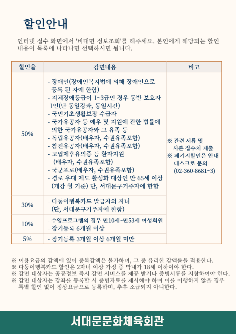 체육프로그램 할인 안내