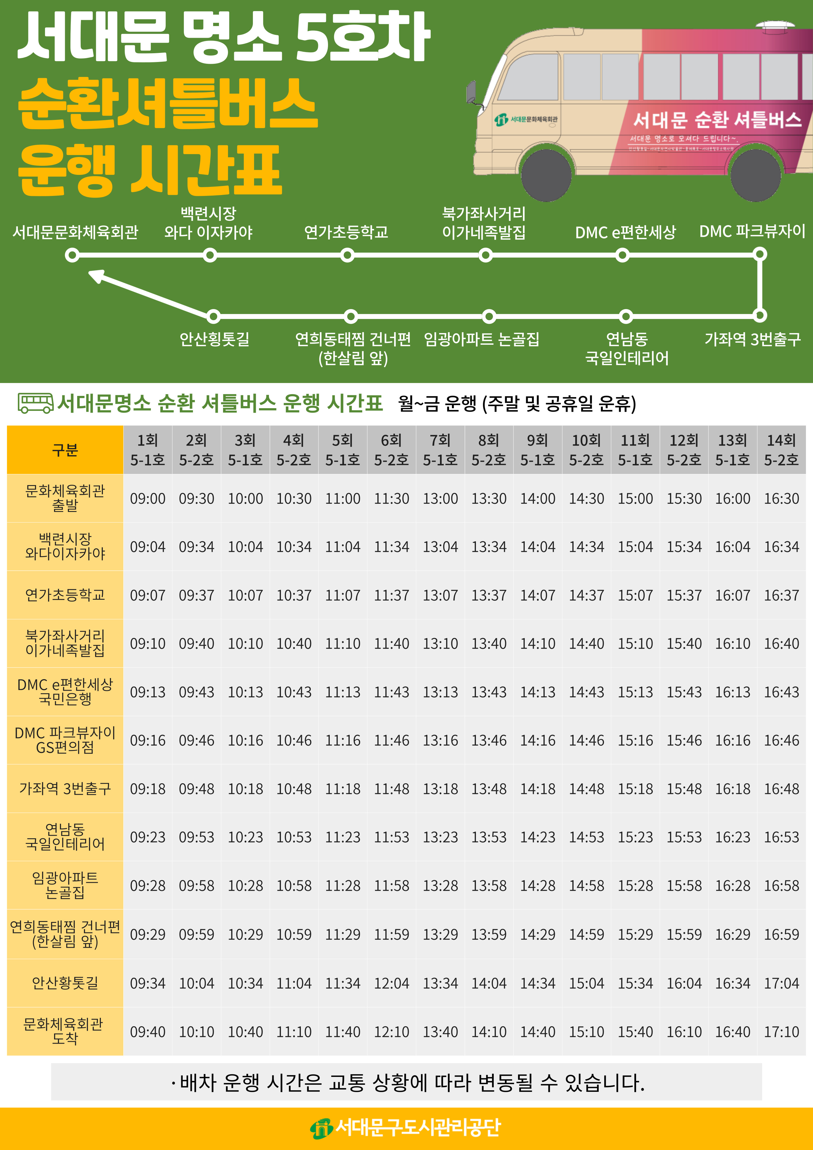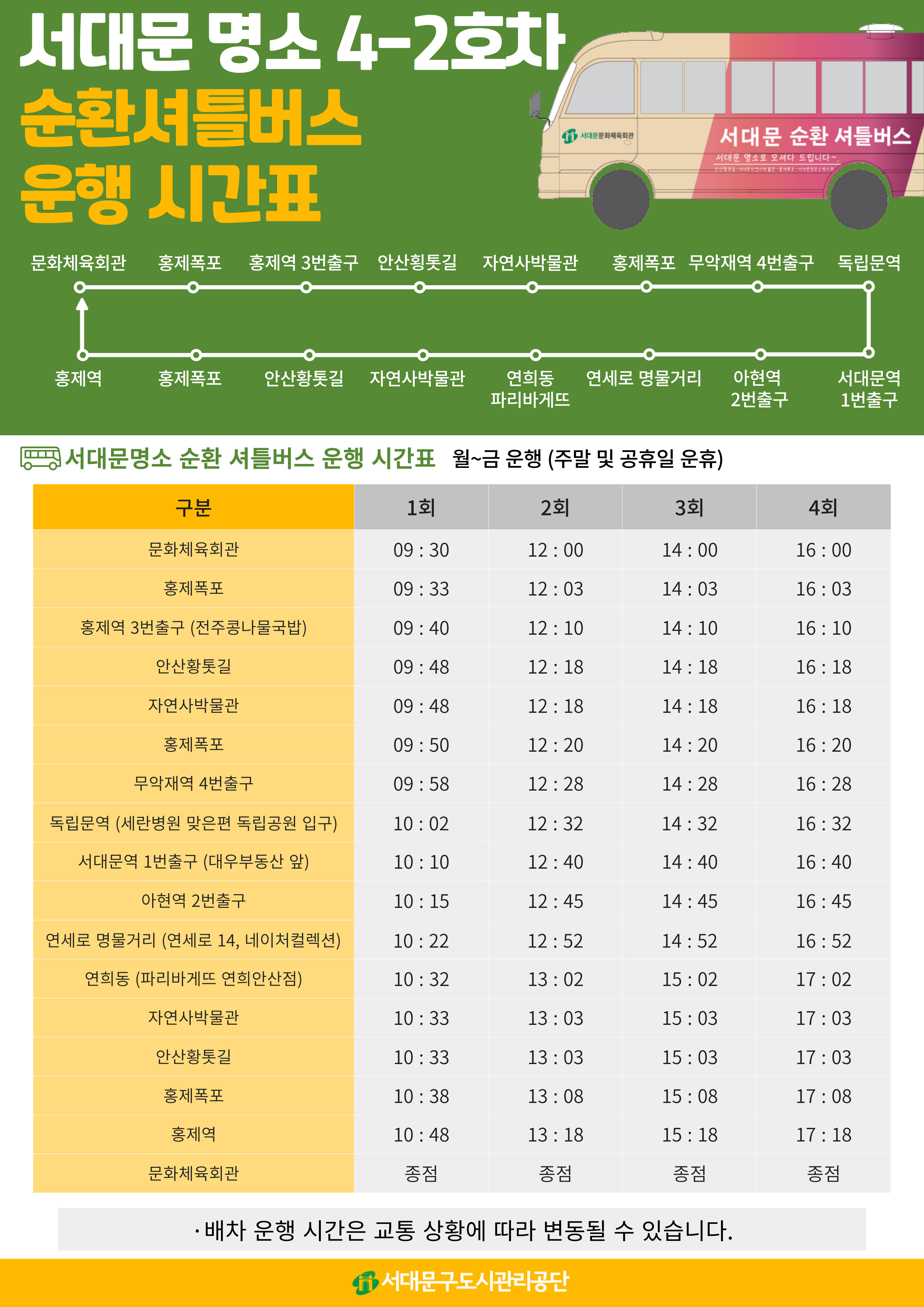 공지 서대문문화체육회관 명소 순환셔틀버스 추가 운행 안내