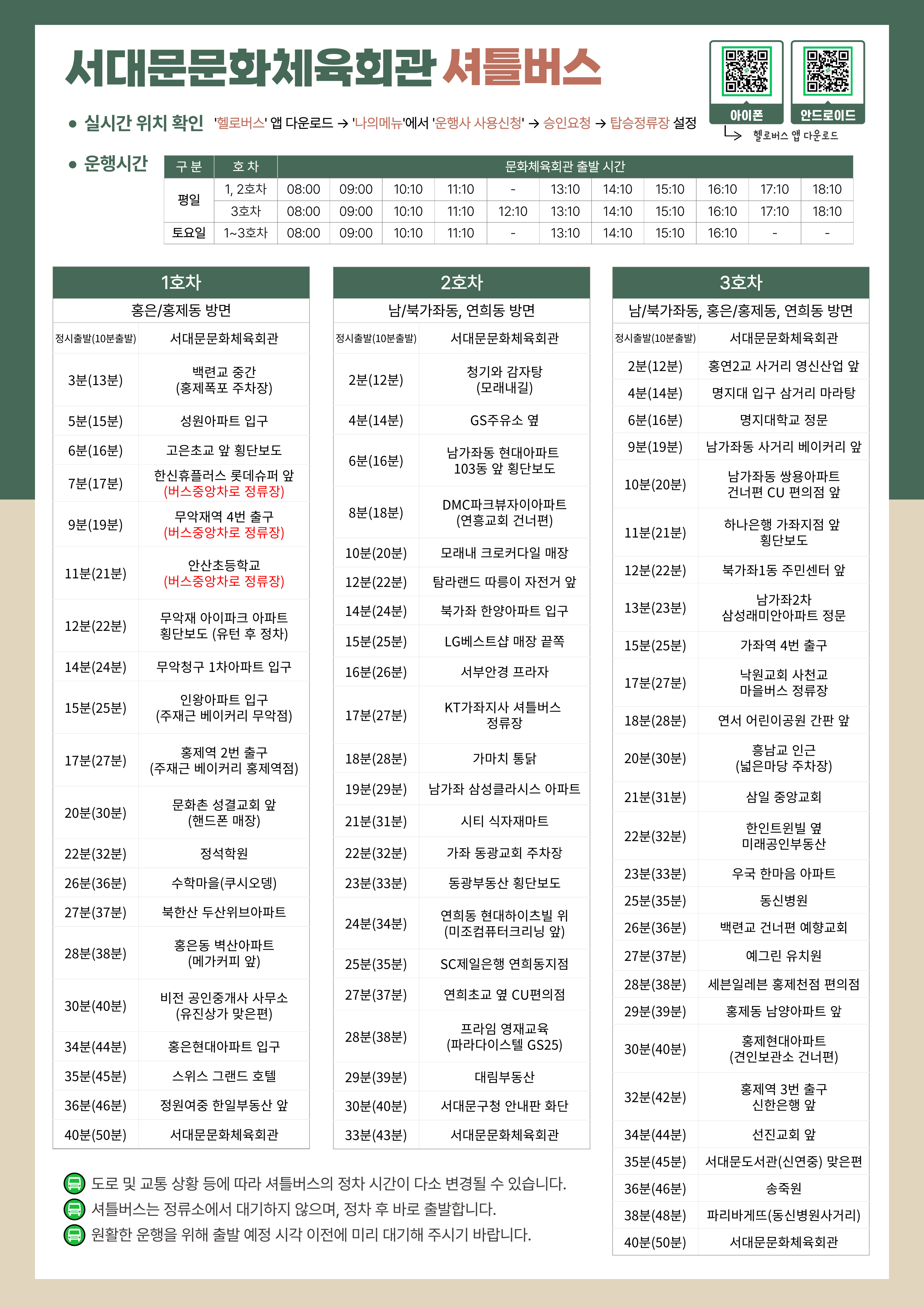 서대문문화체육회관 셔틀버스 노선 안내 (1호차 수정)