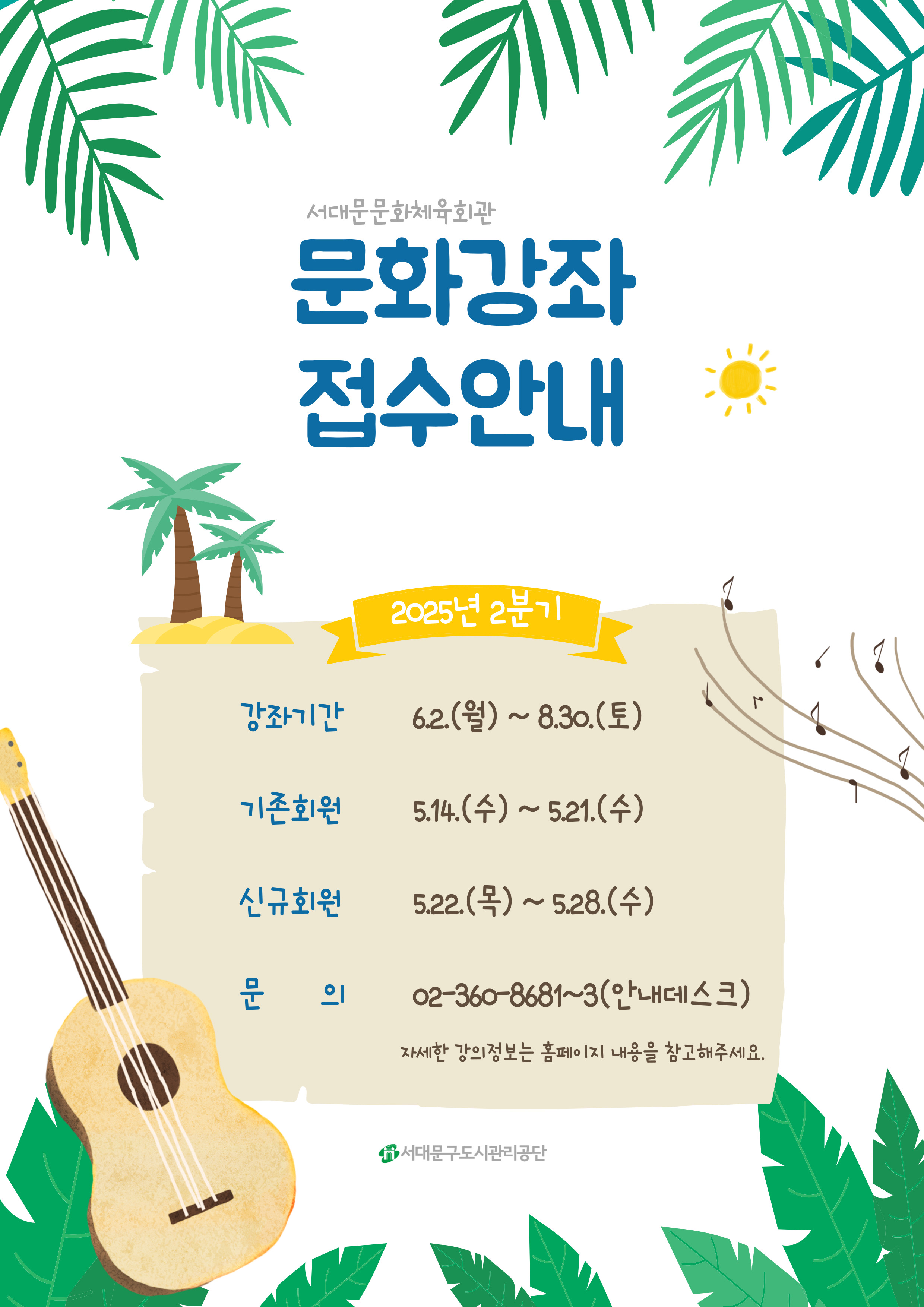 서대문문화체육회관 2분기 문화강좌 접수안내
