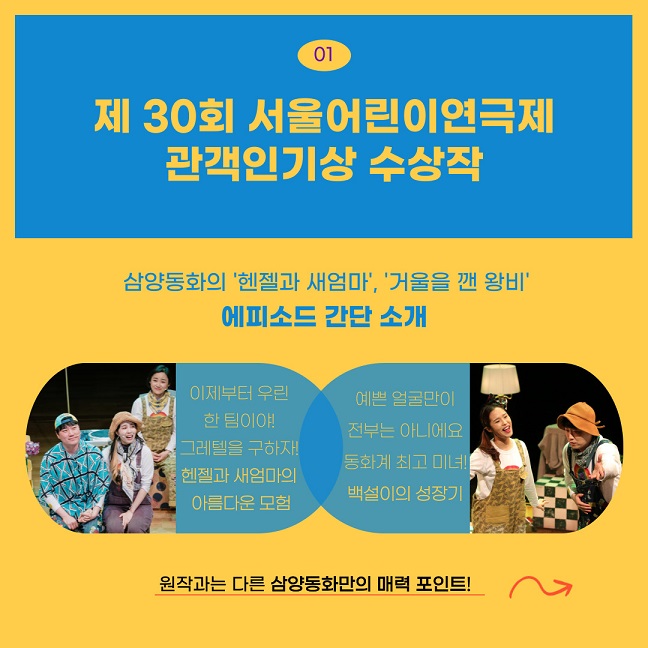 □ 내 용: 아동 뮤지컬 <삼양동화>는 고전동화를 동시대적인 관점으로 새로 쓴 명랑동화 뮤지컬 시리즈로 이번 공연에서는 총 10개 작품 중