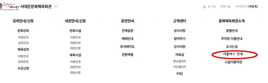 1. 홈페이지 → 문화체육회관 소개 → 셔틀버스 안내 추가