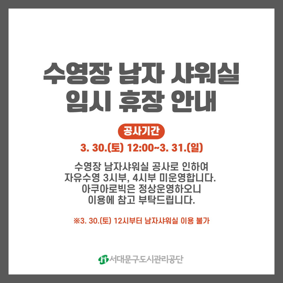 수영장 남자 샤워실 임시 휴장 안내