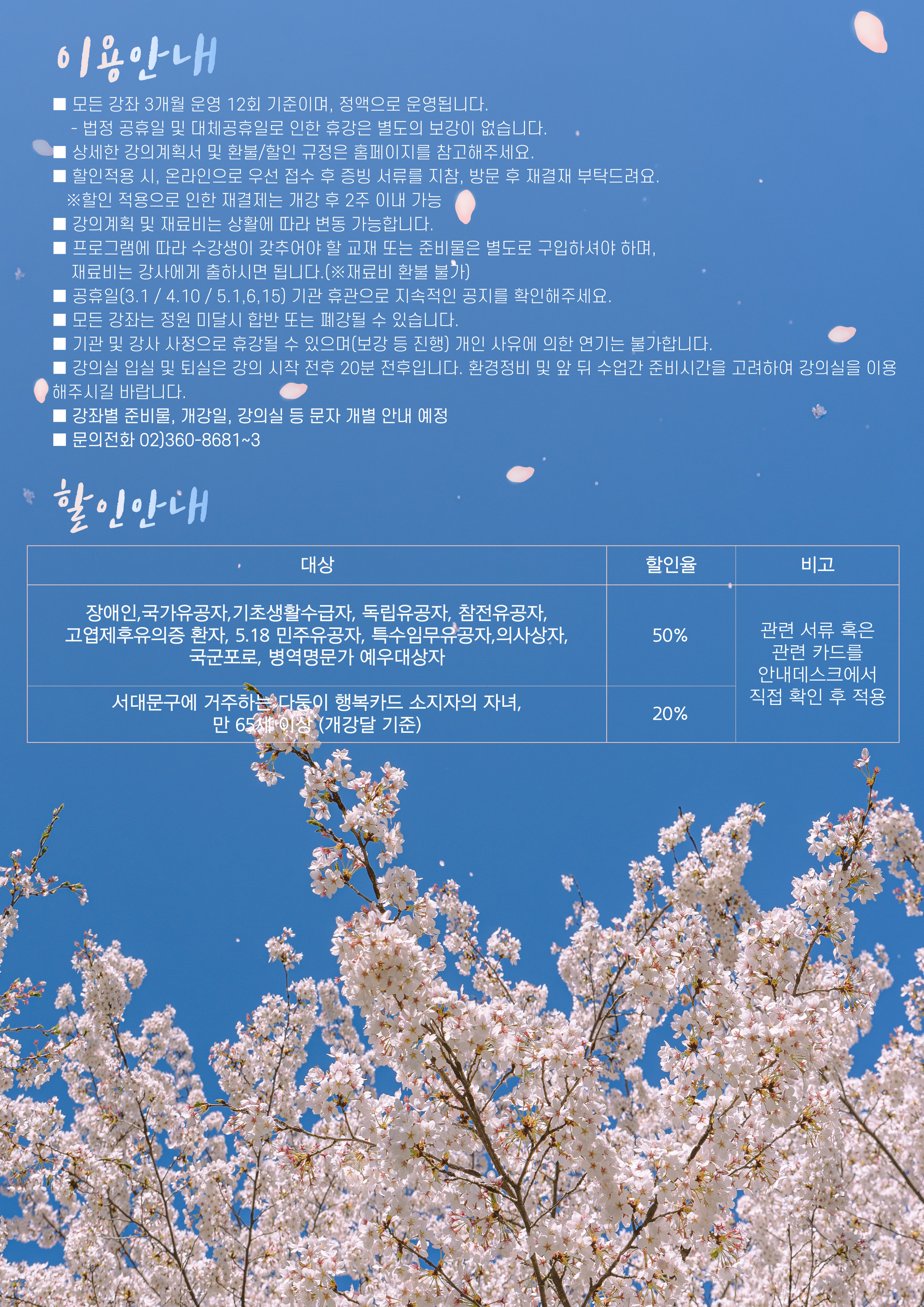 ☎ 02-360-8681~3 //기존 회원님께서는 꼭 기간 내 신청해주세요 ^^