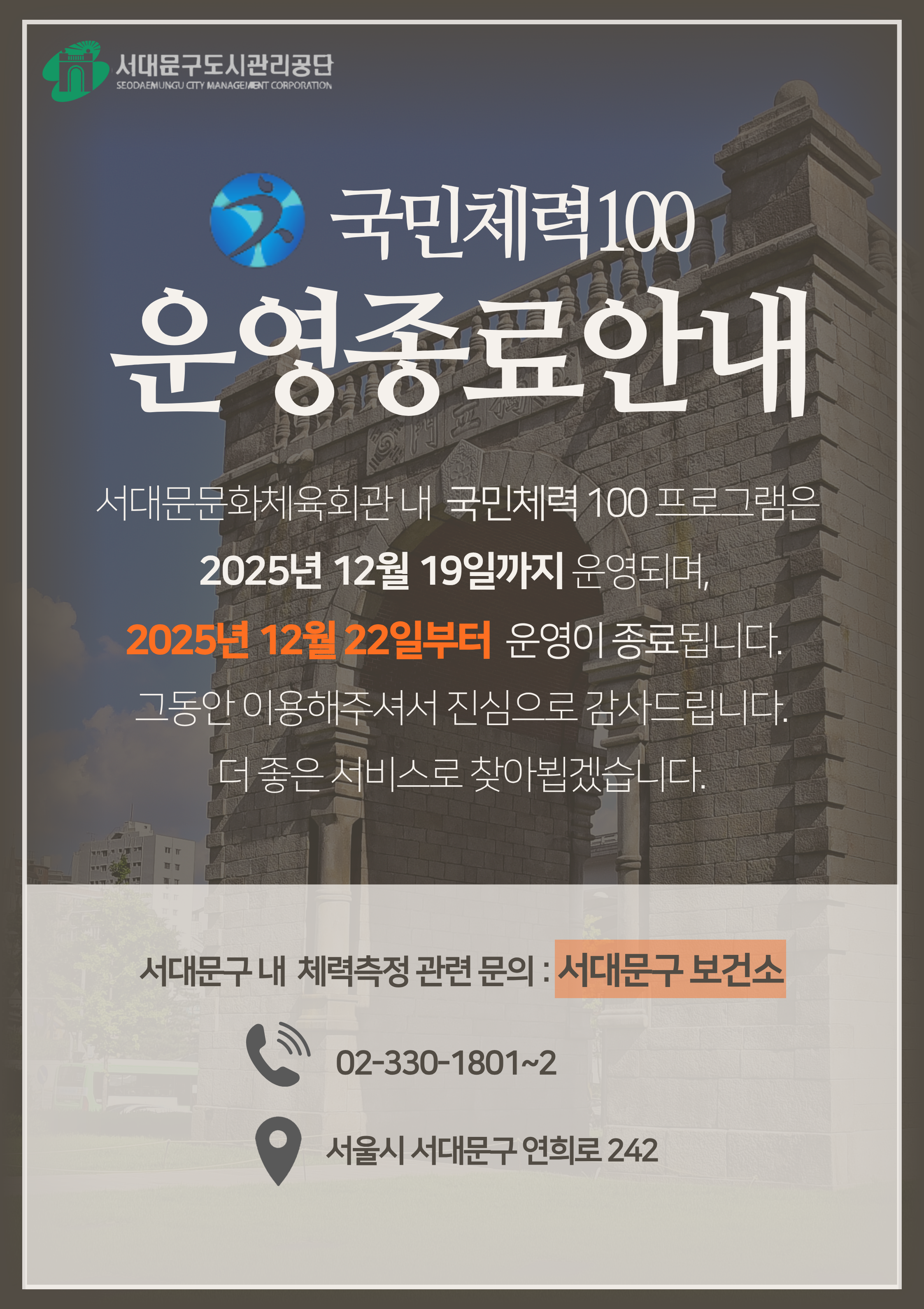 [국민체력100 서대문체력인증센터 운영 종료 안내]