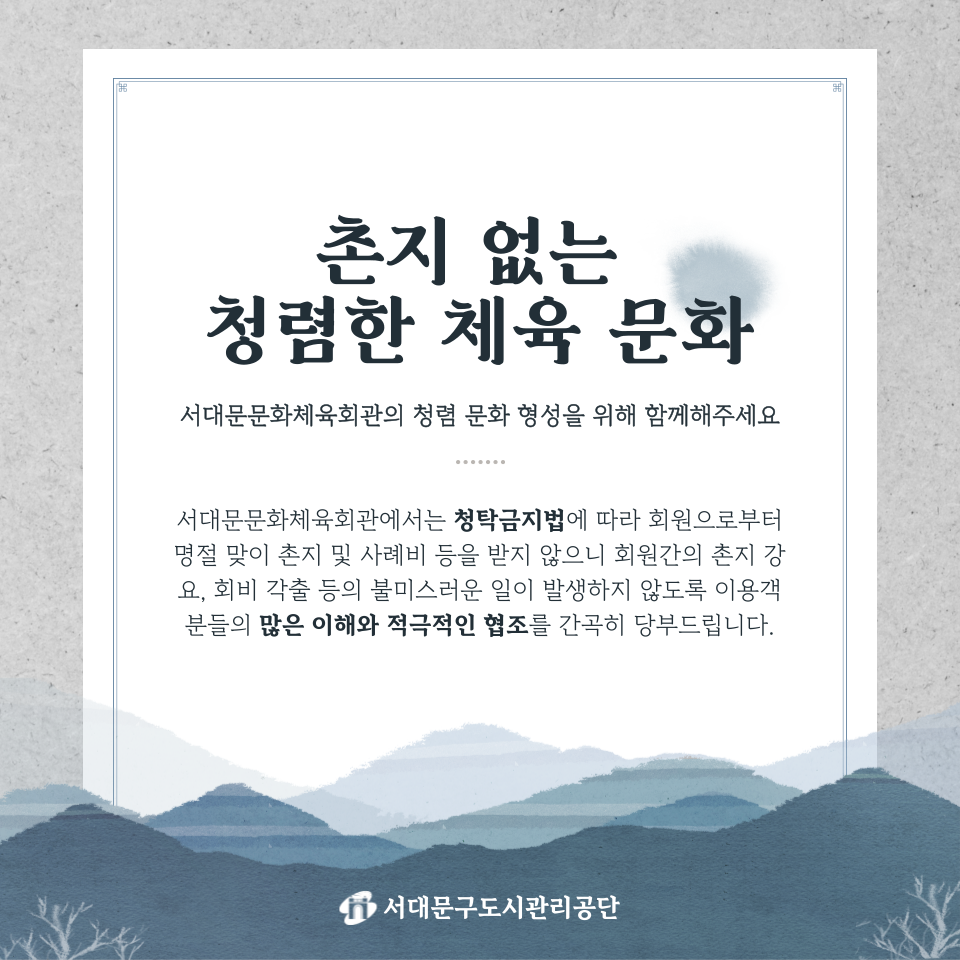 공지 서대문문화체육회관 명절 맞이 촌지 근절 안내