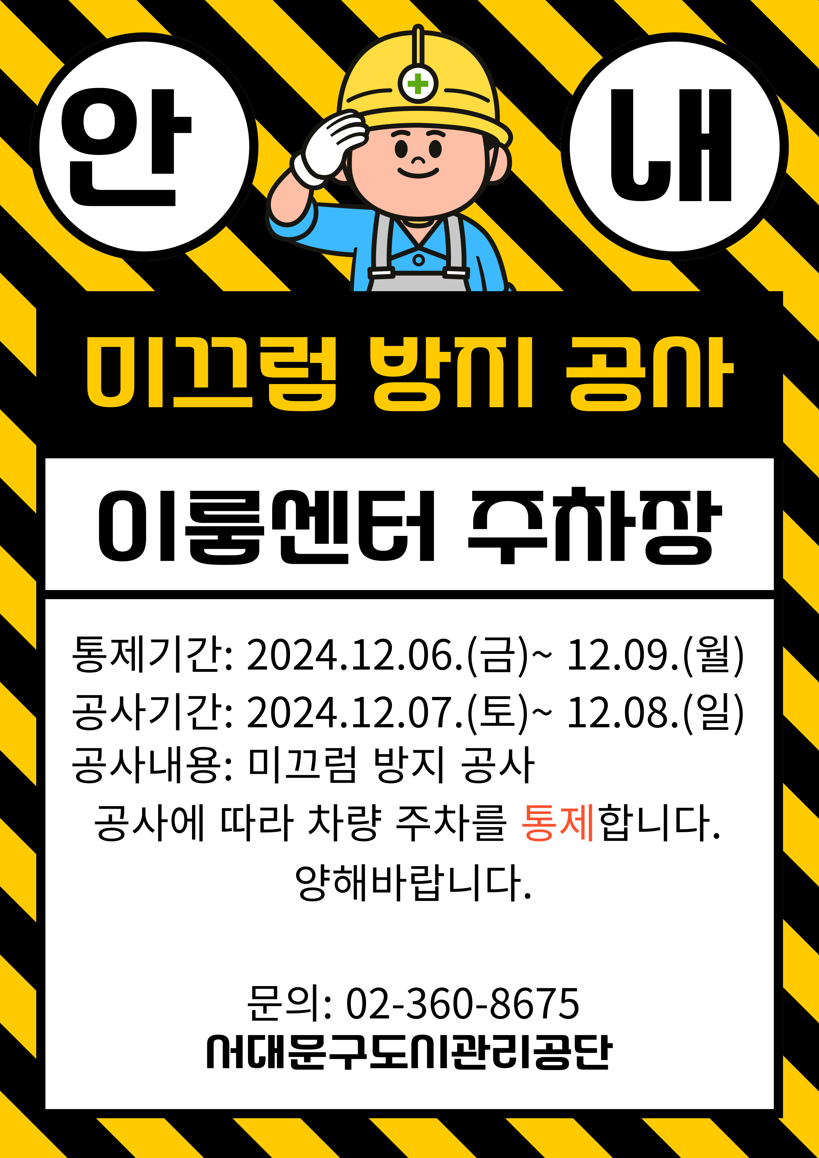 서대문문화체육회관 이룸센터 주차장 통제 안내