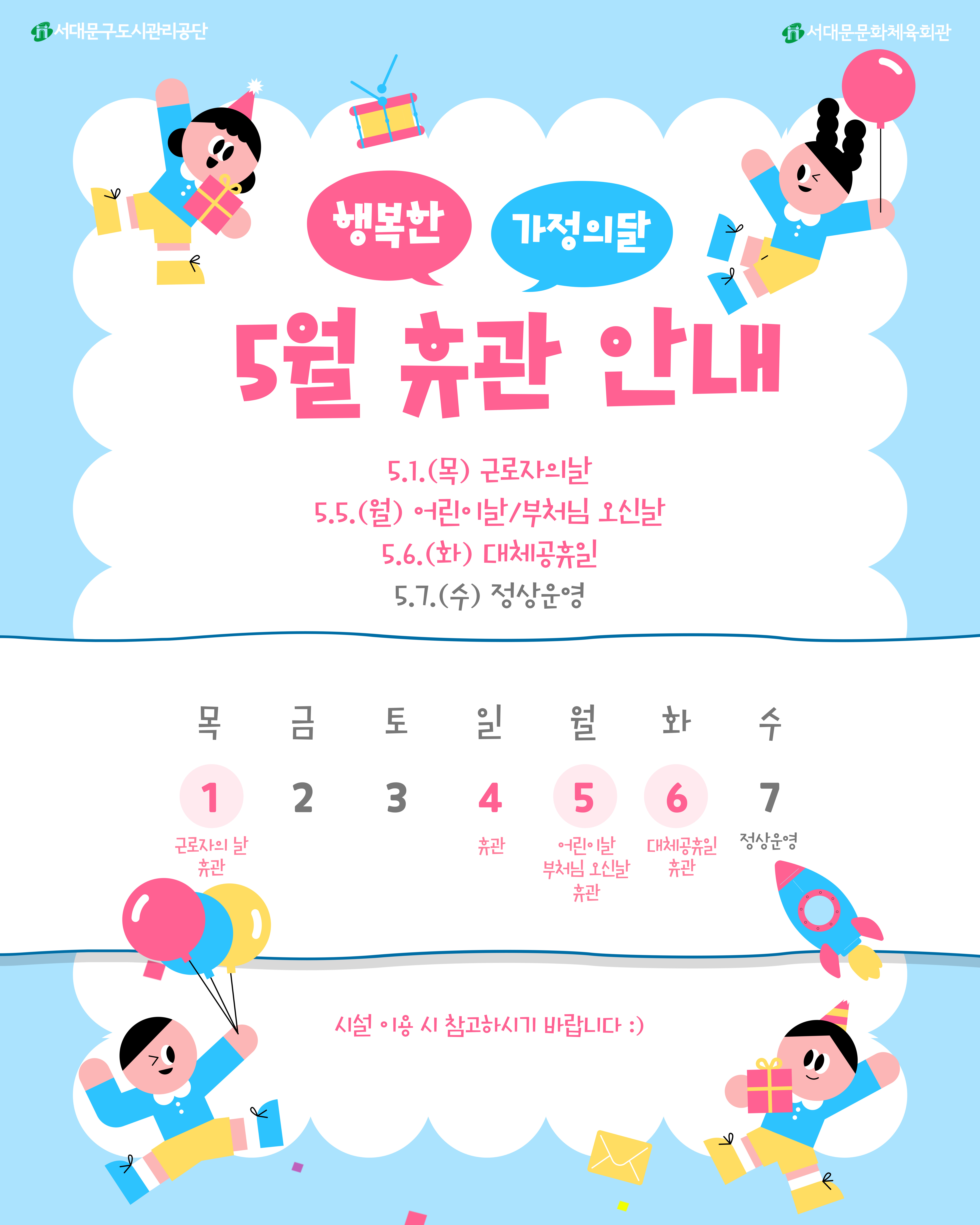 서대문문화체육회관 5월 가정의 달 휴관 안내