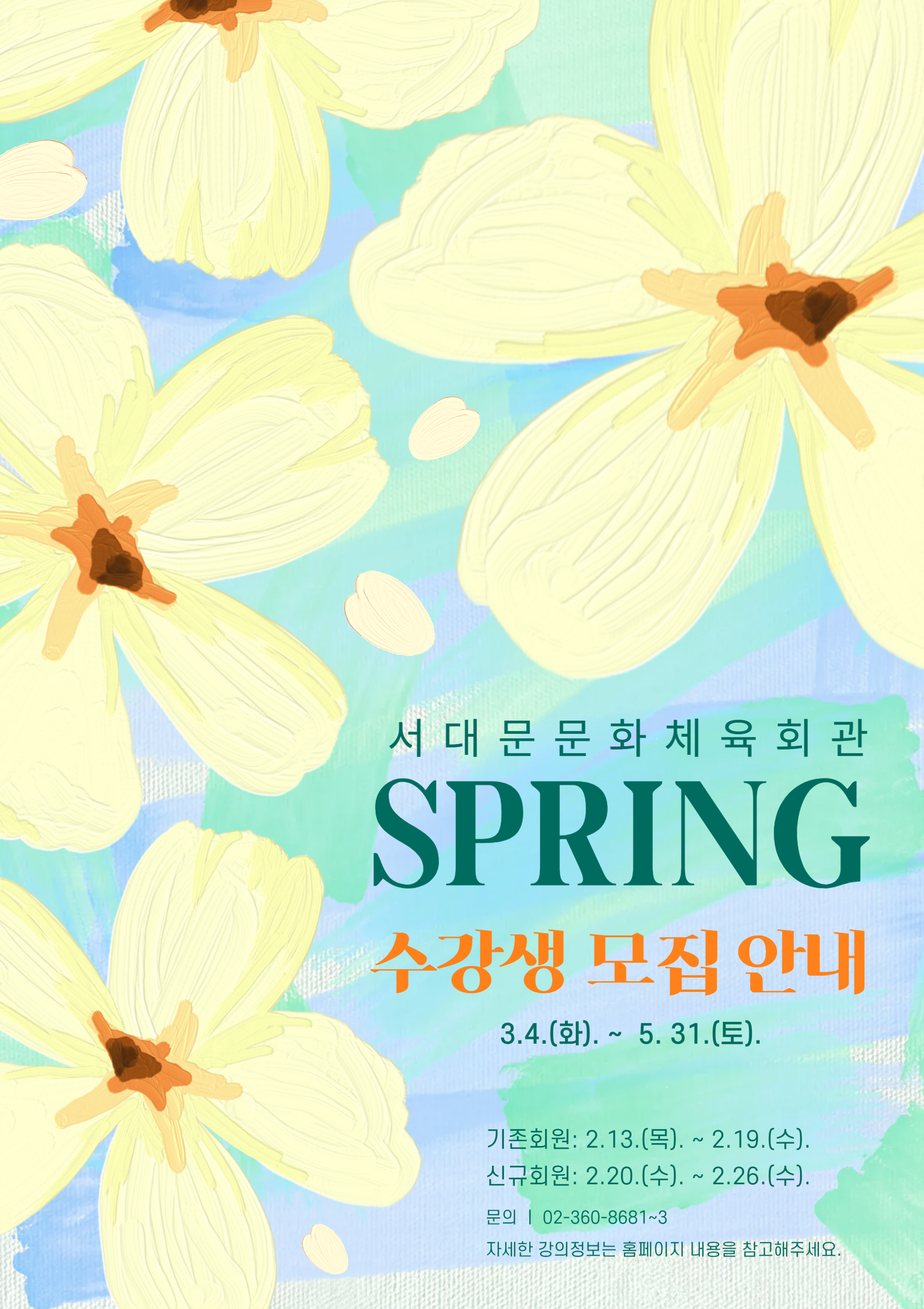 -기존회원: 2. 13.(목) ~ 2. 19.(수) / 방문, 인터넷, 전화 접수 모두 가능
