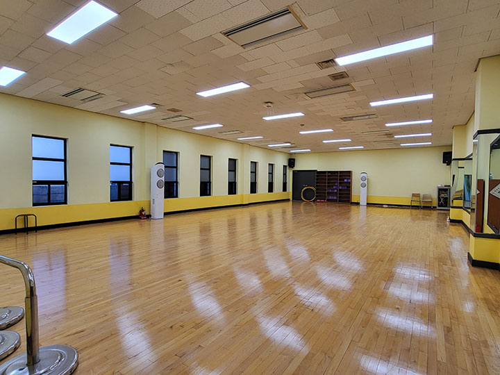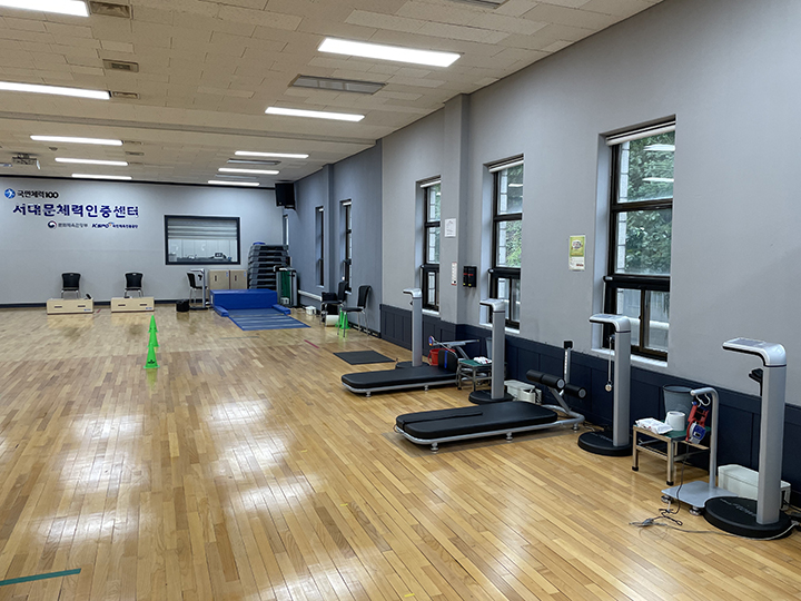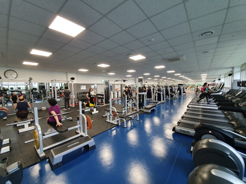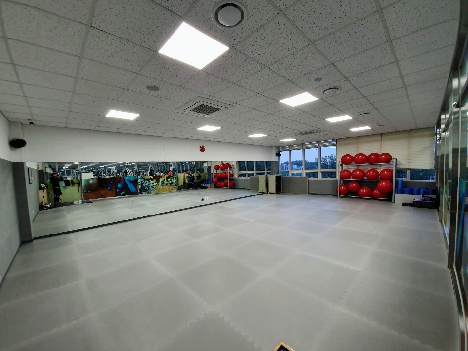 434.60㎡ 규모의 헬스장은 인조잔디구장을 바라보는 전망과 함께, 23대의 런닝머신을 비롯한 다양한 헬스장비와 GX룸으로 구성되어 있으며, 다양한 GX프로그램을 운영 중